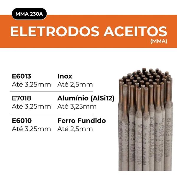 • Intensidade máxima da soldadura de 230A.